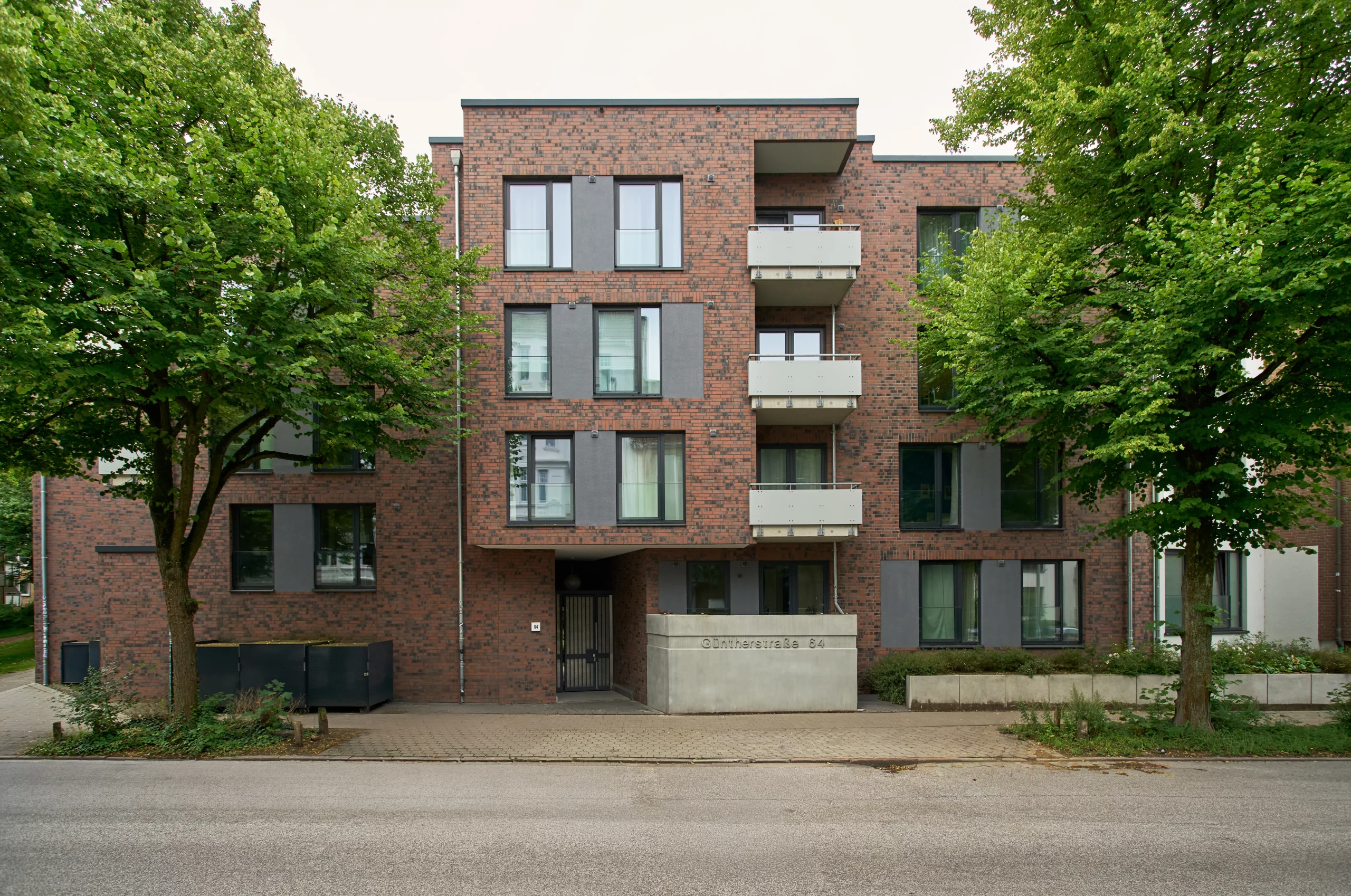 In der Güntherstraße in Hamburg-Hohenfelde haben wir zwei Gebäudezeilen zu einer Blockrandbebauung ergänzt.
